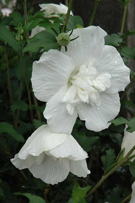 Delightful, large, white anemone-like flowers with fringed center are extremely showy throughout the summer; a tall, stiffly upright shrub with vase shape habit; very adaptable plant, but prefers full sun.