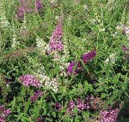 An explosion of color erupts in the landscape with this combination of pink purple and white flower spikes that bloom from summer to frost on a plant reaching 5 to 10 feet high by 4 to 8 feet wide.