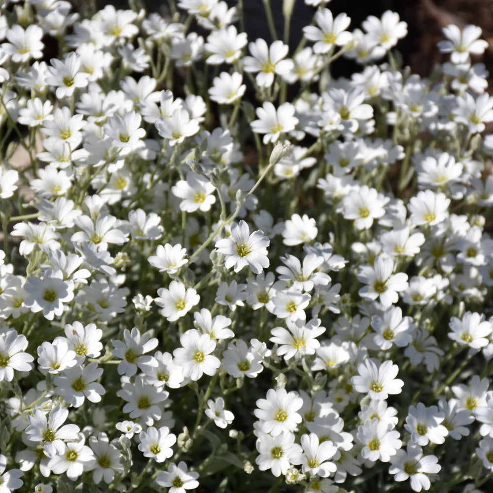 An undemanding groundcover for sun and poor soil; highly valued for its woolly gray foliage; it lives up to its name in late spring and early summer when it is absolutely smothered in luminous white flowers; more restrained compact habit than the species.
