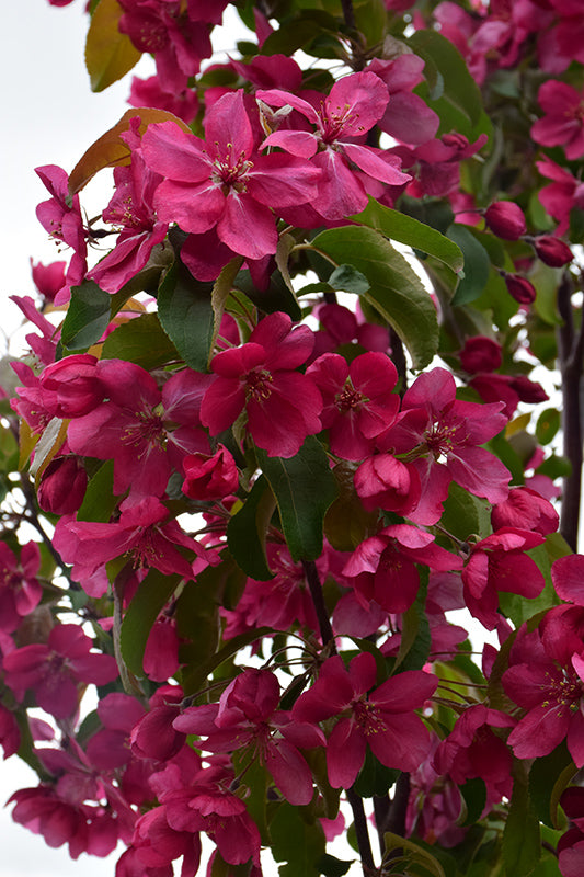 A beautiful accent tree covered in abundant deep red flowers in spring followed by persistent deep red fruit in fall, distinctive narrowly upright form ideal for smaller landscapes; needs well-drained soil and full sun.