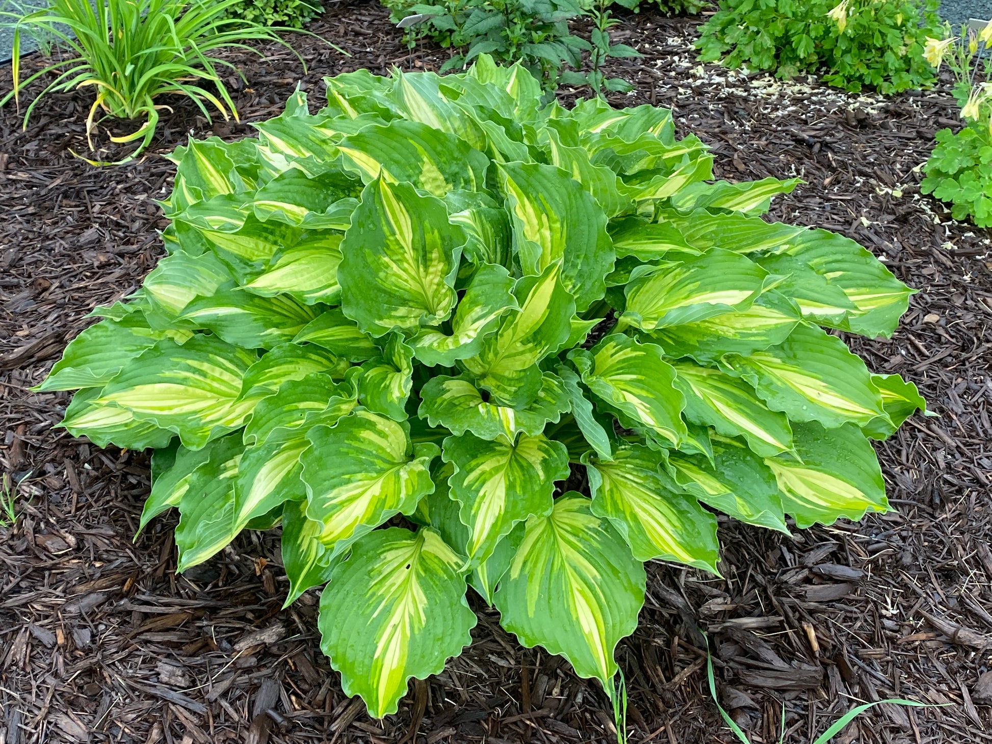 An entrancingly different hosta – leaves develop distinct markings that resemble white feathers placed on the center rib of the wavy edged deep green leaves. Lavender flowers in mid-summer.