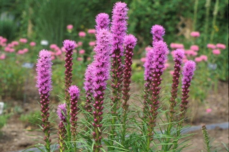 An excellent cut or dried flower blooming in mid-summer. The bloom is a flower spike which blooms from the top down. Grows best in well drained soil. Very spectacular. This variety grows somewhat shorter and has flashy lavender flower spikes.