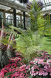 A shade tolerant palm that thrives well under a canopy of tall trees, can adjust to light levels; grows very quickly and is tolerant of different soil types; must be fertilized frequently; an attractive floor plant for a high light indoor area.