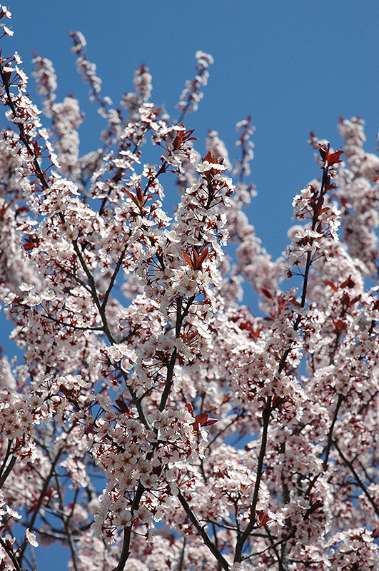 A colorful front yard accent tree for the average home landscape, featuring a cloud of light pink flowers in spring and deep purple foliage all season long, ornamental growth habit, hardier and more compact than similar selections of this species.