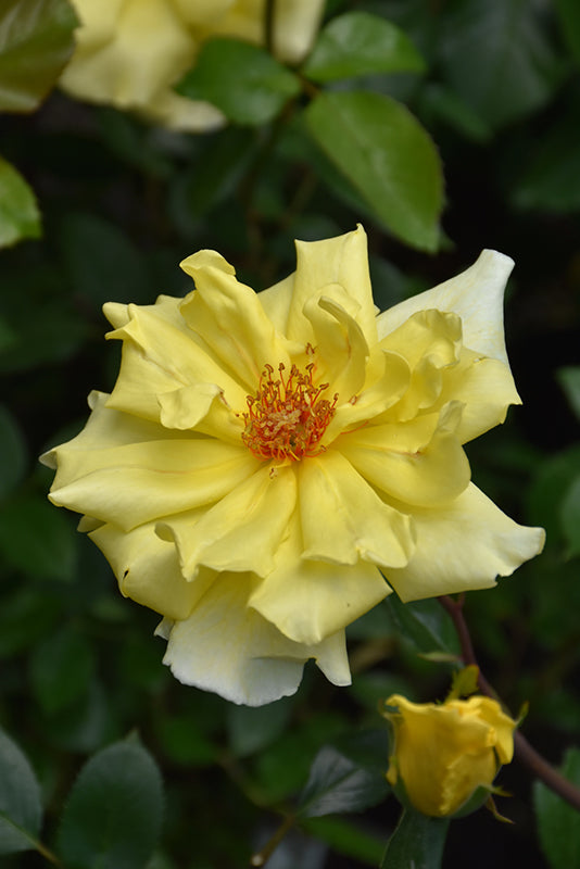 This vigorous grafted rose produces sprays of fragrant, double blooms that open daffodil yellow and soften to primrose; deadheading encourages continued bloom, but it is advised to allow development of colorful hips in fall; hardy and vigorous.
