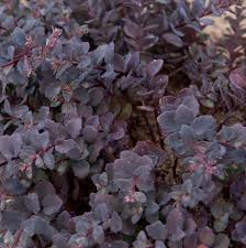 Arching blue steel foliage with plum highlights is low growing and compact. The late summer flowers are small bright and rosy red making a beautiful color combination. Well suited to hot dry conditions. A wonderful easy and very low maintenance perennial.